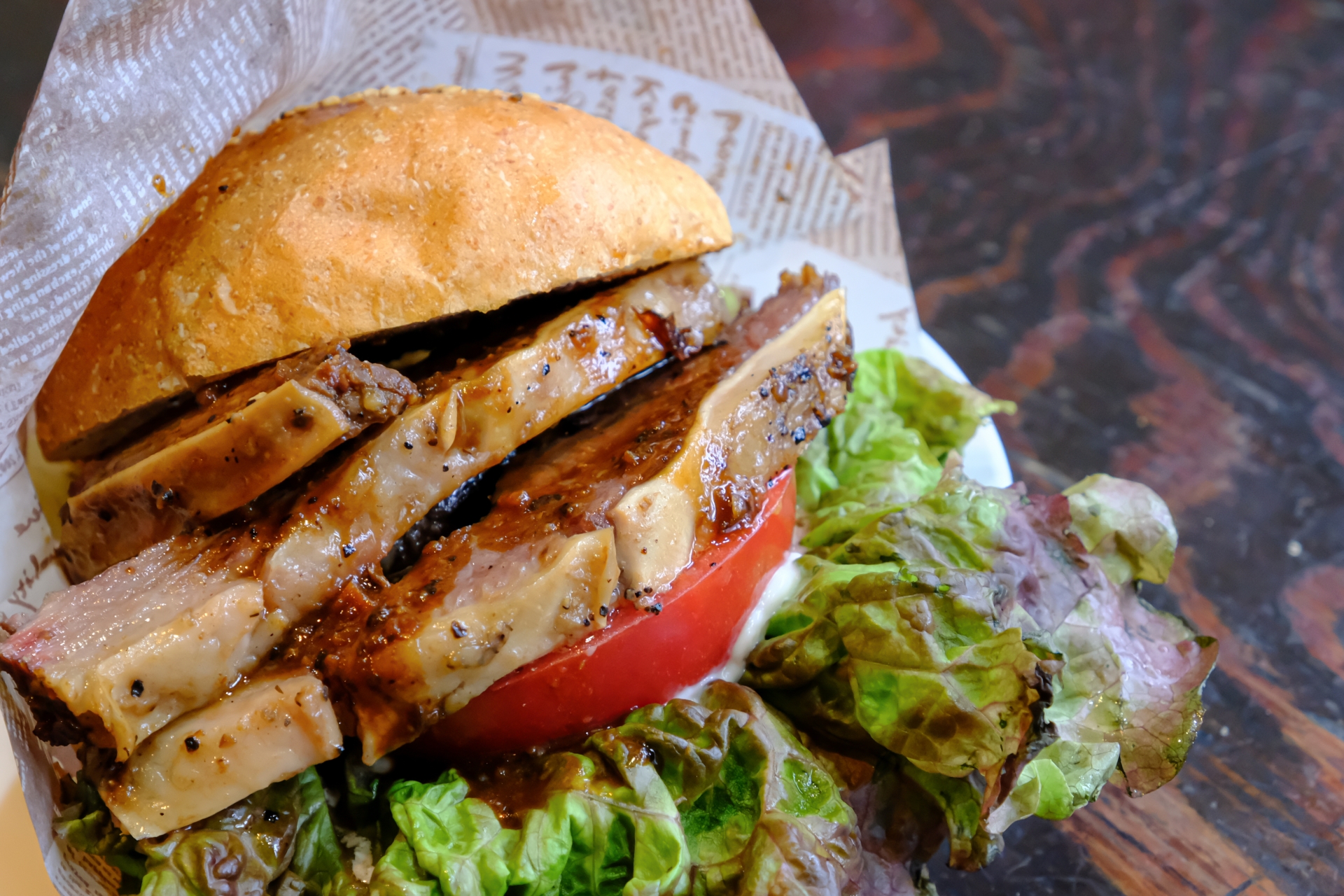 ビーフパティ130g/レタス/トマト/グリルオニオン/ピクルス/自家製アイオリーソース